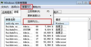 2.在打開的任務(wù)管理器窗口中,咱們將界面切換到查看這一欄中,然后在點(diǎn)擊查看后會出現(xiàn)一個下滑菜單,咱們點(diǎn)擊其中的最后一項(xiàng),也就是選擇列。