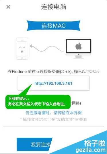 在Finder>前往>連接服務器>,輸入提示的地址。