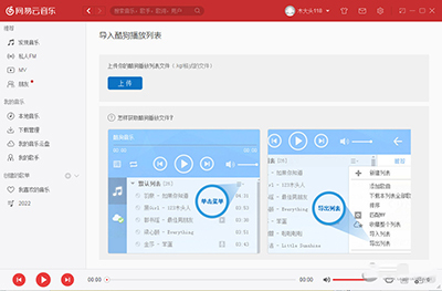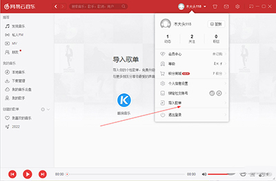 網(wǎng)易云音樂PC版導入酷狗歌單教程 1、登錄網(wǎng)易云音樂賬號,點擊“導入歌單” 網(wǎng)易云音樂 2、選擇“酷狗音樂” 網(wǎng)易云音樂 3、點擊“上傳”選擇列表文件即可導入