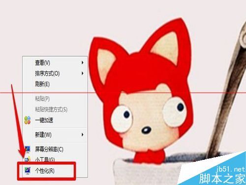 1、小伙伴認(rèn)真看,我們首先在桌面上,單擊鼠標(biāo)右鍵,桌面就會出來一個對話框,對話框里面有很多選項(xiàng),比如查看刷新什么的,這些我們都不管,我們單擊左鍵,點(diǎn)擊最下面的“個性化”就可以了。
