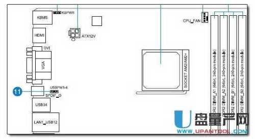 主板的SPDIF輸出位置圖(藍(lán)色11標(biāo)注處)