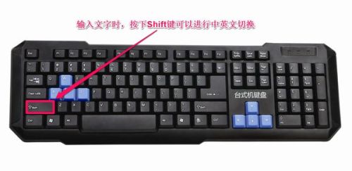 2、輸入文字時,按下Shift鍵可以進行中英文切換。