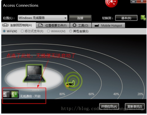 點(diǎn)擊功能軟件Access Connections,將“無線通信”關(guān)閉,如下圖位置:
