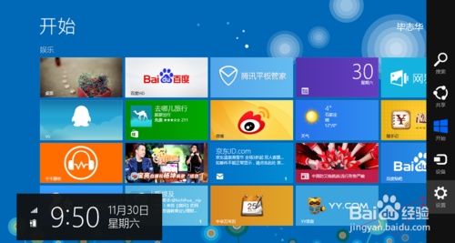 首先在開始界面中將鼠標移動到右下角打開超級菜單,或者通過快捷鍵:Win鍵+C鍵打開。打開后點擊設置。