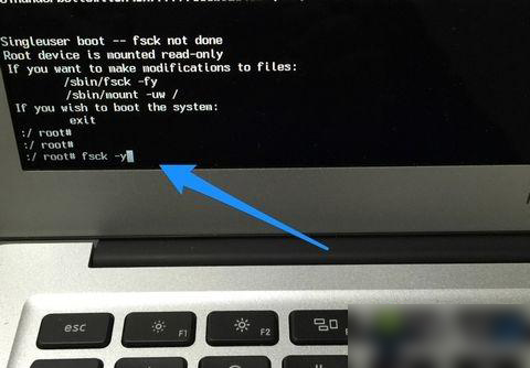 2、之后會(huì)彈出命令字符,輸入fsck -y并按回車。