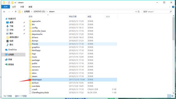 3.找到一個叫【Steamapps】的文件夾,雙擊打開文件夾進入下一級;