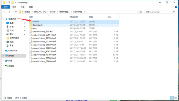 4.接著在steamapps文件夾內(nèi)找到【workshop】文件夾,雙擊打開;