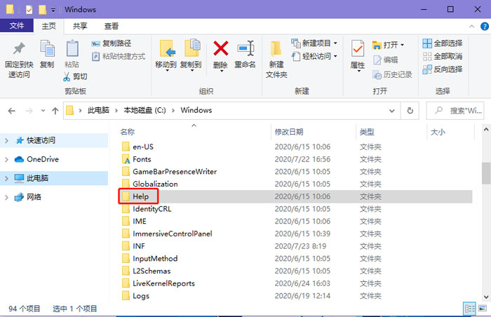 在C盤中,有一個Help幫助文件夾,里面的文件全是Windows的幫助文件,不需要使用help幫助的用戶,可以找到C盤Windows文件下的Help文件,右擊選擇刪除,將Windows幫助文件刪除。