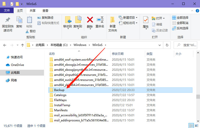 在電腦中,系統(tǒng)會自動保留我們的系統(tǒng)備份文件,可以進入C盤 – Windows – winsxs – Backup文件夾,Backup文件夾為Windows備份文件,可以刪除該文件夾,右擊選擇刪除即可。