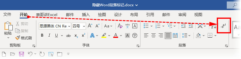 那該如何隱藏段落標(biāo)記呢?其實(shí)很簡(jiǎn)單,只需點(diǎn)一下開(kāi)始選項(xiàng)卡,段落功能組的“顯示/隱藏段落標(biāo)記”命令就可以隱藏段落標(biāo)記。