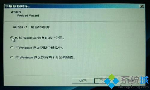 1) 僅將Windows恢復(fù)到第一分區(qū):本項(xiàng)目將只會刪除第一個(gè)分區(qū)中的內(nèi)容,讓系統(tǒng)保留其他分區(qū),并將系統(tǒng)安裝于” C “盤;
