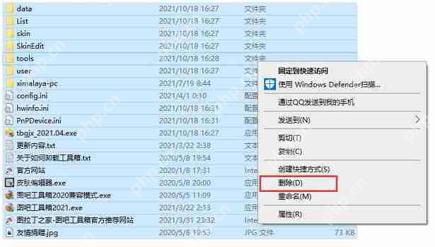 7、然后,右鍵點(diǎn)擊選中的文件,在彈出的菜單中選擇“刪除”,即可完成圖吧工具箱的卸載。