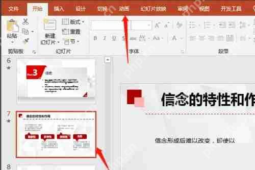 接下來(lái),在PPT文件上方的功能區(qū)中找到“動(dòng)畫”菜單,并點(diǎn)擊“動(dòng)畫”,在彈出的下拉選項(xiàng)中選擇“動(dòng)畫窗格”。