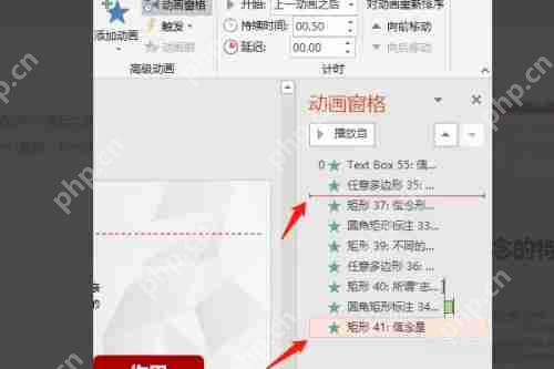 此外,您還可以在“動(dòng)畫”下拉選項(xiàng)中找到“重新排列動(dòng)畫”功能來(lái)調(diào)整動(dòng)畫順序。