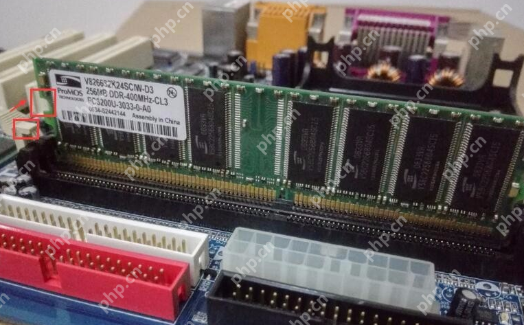 3、根據(jù)內(nèi)存的缺口,插入內(nèi)存條,插反了是插不進(jìn)去的,聽到滴答聲說明已插到位,兩邊的鎖扣會扣住內(nèi)存缺口。