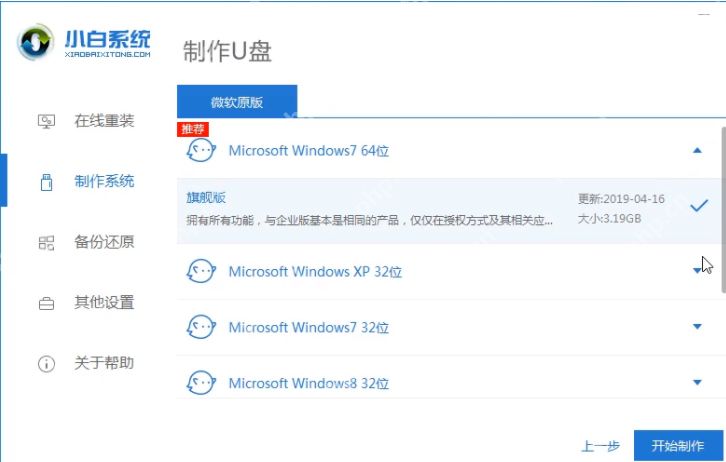 - 選擇一個您需要安裝的系統(tǒng),點(diǎn)擊右下角的“開始制作”。
