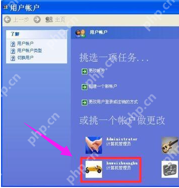 然后通過控制面板進(jìn)入用戶帳戶,找到忘記密碼的賬號(hào),點(diǎn)擊進(jìn)入。