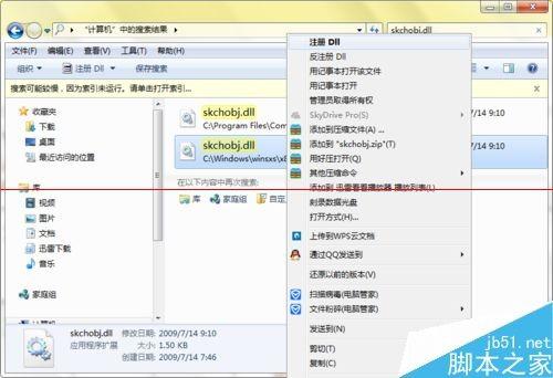 3、打開(kāi)資源管理器,在C盤(pán)中搜索到skchobj.dll