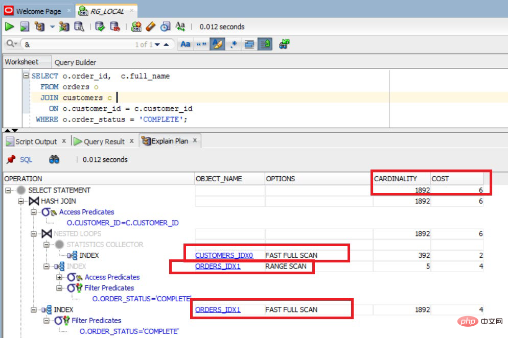 成本從 8 降低到 6,這意味著通過使用索引快速全掃描和范圍掃描替換全表掃描,成本提高了 25%。