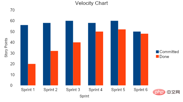 承諾點(diǎn)數(shù)在沖刺開始時計算。沖刺中所有工作項(xiàng)的點(diǎn)數(shù)相加。完成點(diǎn)數(shù)在沖刺結(jié)束時計算。所有與已完成項(xiàng)相關(guān)的點(diǎn)數(shù)相加。