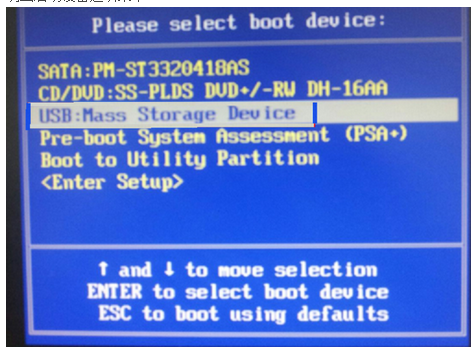 方法二:開機后按快捷鍵,調出啟動設備選項菜單,選取對應的U盤,確認啟動進入PE。